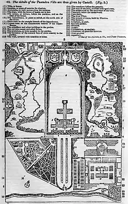 - Podle popisu Rose Standish Nichols, z knihy English pleasure gardens se jiná forma pavilónu, casino, skládalo z dvou nebo tří místností a bylo považováno téměř za nutnost. Bylo zvláště určeno k hrám, hostinám nebo odpočinku. Jak byla vila stranou ruchu města, tak casino bylo stranou ruchu nevyhnutelného ve venkovském sídle, obsahujícího, kromě hostitele a jeho rodiny, tucet hostů a sto otroků.