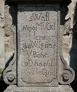 Nápis obsahuje chronogram vyznačený velikostí písmen: MDCLLXVVIIIIII = 1726