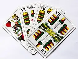 - označení hodnot hracích karet, zejména hodnoty 7, 8, 9, 10 u mariášových karet