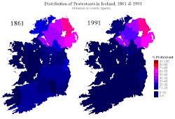 V Severním Irsku, součásti Spojeného království, se k římskokatolickému vyznání hlásí 40 % obyvatel (2001; 1961: 35 %), k hlavním protestantským denominacím – anglikánům a presbyteriánům – dohromady 36 % (1961: 53 %). Konfesní příslušnost hraje významnou identifikační roli ve sporu unionistů a republikánů, který už desítky let činí Severní Irsko neklidnou oblastí.