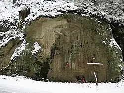 Skalní reliéf Ukřižování | Dobřeň | bohoslužby příležitostně | při silnici jižně od vsi, pp. 1222/2 50°28′41″ s. š., 14°33′2″ v. d. |