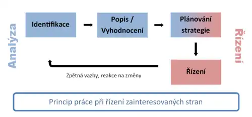 V průběhu řešení projektu dochází ke změnám zainteresovaných stran. Mění se jednak množina zainteresovaných stran, tak jejich postoj a míra vlivu. V důsledku těchto změn je nutné se vracet cyklicky k analýze zainteresovaných stran a na základě jejího výsledku korigovat jejich řízení. [3] Součástí každého řídícího procesu musí být i monitoring a zjišťování zpětné vazby. To jsou další důležité vstupy pro analýzu a plánování řízení zainteresovaných stran. [1]