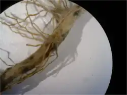 Úhyn řízků může být také způsoben napadením polyfágní půdní houbou kořenomorka bramborová (Rhizoctonia solani). Napadení se projevuje po napíchání řízků v ohniscích, černáním řízků od základu a hnilobou kořenových vlásků. Symptomem jsou tmavě hnědé vodnaté skvrny na listech zakořenělých rostlin. Infikované řízky nebo mladé rostliny odumírají. Infekce se může projevit za 1–2 roky od prvotního napadení, poté nastává rychlý úhyn celého keříku.[10] Projevy choroby ovlivňuje stres způsobený rostlině vlivem nevhodného prostředí. Hniloba se rychle šíří při teplotě 17 až 26 °C. K omezení choroby pomáhá preventivní zálivka půdními fungicidy obsahujícími účinné látky captan, iprodione nebo thiophanate-methyl a odstranění napadených řízků a rostlin. [11]