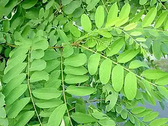 List drmku Vitex altissima s výrazně křídlatým řapíkem