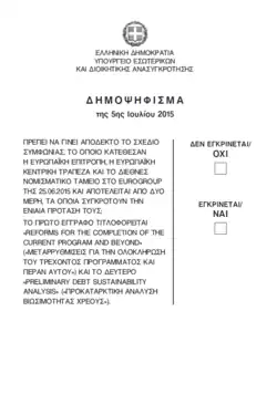 - ↑ referendum2015gov.gr Archivováno 1. 7. 2015 na Wayback Machine., 30. 6. 2015 (anglicky), (řecky)