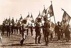 Řecký král Konstantin I. slaví s vojáky vítězství v bitvě u Kütahyi, červen 1921