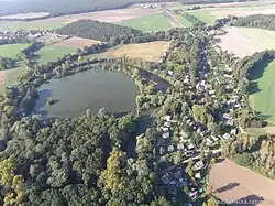 Okolí tůně je zarostlé starými stromy, za jejichž úzkými pásy jsou na severu a západě pole. Na jihu roste mezi jezerem a Labem les. Na západním břehu se nacházejí osady Řehákova Bouda a Tři Chalupy. V západní části jezera se nacházejí dva zalesněné ostrovy a v severní části dlouhý a úzký poloostrov, který odděluje původní říční rameno a písník. Přes průliv oddělující jihovýchodní zátoku od jezera vede lávka.