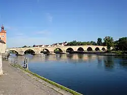 - Kamenný most (Steinerne Brücke) z let 1135–1146 je nejstarším dochovaným a dodnes používaným mostem na sever od Alp, který se stal vzorem dalších mostů v Evropě (Londýn, Avignon) i v Čechách (Juditin most). Přes něj vedoucí obchodní cesta byla zdrojem bohatství města.