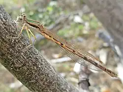 ![]() Šídlatka hnědá (Sympecma fusca), sameček | |