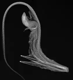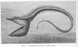 - ↑ a b c d NIELSEN, Jørgen G.; BERTELSEN, E.; JESPERSEN, Åse. The Biology of Eurypharynx pelecanoides (Pisces, Eurypharyngidae). Acta Zoologica. 1989-09, roč. 70, čís. 3, s. 187–197. Dostupné online [cit. 2022-05-29]. doi:10.1111/j.1463-6395.1989.tb01069.x. (anglicky)