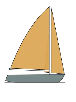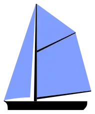 (a vrcholovou plachtou) na hlavním stěžni a kosou plachtou vpředu.
