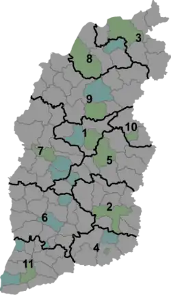| 9 | Sin-čou | 忻州市 | Xīnzhōu Shì | Sin-fu | 3 067 501 | |