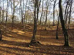 Na tomto území jsou velmi různorodé stanovištní podmínky, na což je vázán výskyt dřevin i bylin. Stejně tak můžeme pozorovat různé druhy hospodaření. Na chudých a kyselých půdách, kde se dříve nacházely pastviny a porosty křovin, dnes najdeme převážně původní doubravy s přimíšenou břízou. Z dalších dřevin se zde na většině území včetně jižních a západních svahů nachází zejména habr obecný (Carpinus betulus), buk lesní (Fagus sylvatica), borovice lesní (Pinus sylvestris), javor babyka (Acer campestre). Na spodních částech svahů pak najdeme trnovník akát (Robinia pseudoacacia), který zde byl uměle vysazen na začátku 20. století. Jedná se o nepůvodní velmi invazivní dřevinu, která se rychle šíří a zamezuje růstu původních rostlin.[14] V údolích se nachází javořiny se zastoupením těchto dřevin: javor mléč (Acer platanoides), javor klen (Acer pseudoplatanus), javor babyka (Acer campestre), lípa srdčitá (Tilia cordata), jilm polní (Ulmus minor), jasan ztepilý (Fraxinus excelsior), jeřáb obecný (Sorbus aucuparia), jeřáb muk (Sorbus aria). Najdeme zde i uměle vysázené porosty smrku ztepilého (Picea abies), modřínu evropského (Larix decidua), borovice černé (Pinus nigra) a dubu červeného (Quercus rubra), jednotlivě se zde vyskytují i douglasky tisolisté (Pseudotsuga menziesii) a borovice vejmutovky (Pinus strobus). Ve vlhčích stanovištích okolí potoků najdeme olši lepkavou (Alnus glutinosa), vrbu bílou (Salix alba), případně se může vyskytnout topol osika (Populus tremula) a vrba jíva (Salix caprea).[12]