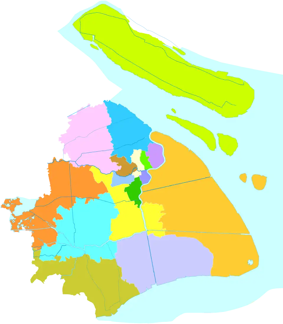 Šanghaj je jedno ze čtyř přímo spravovaných měst v Číně a je rozdělena na 16 obvodů. Devět z nich, souhrnně označovaných Pchu-si (浦西, Pǔxī) na západním břehu řeky Chuang-pchu-ťiang (黄浦) představuje historické jádro města, zatímco desátý obvod Pchu-tung (浦东, Pǔdōng), vytvořený roku 1992 je moderní čtvrť na protějším východním břehu.
