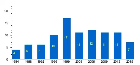 | 1999 | 17 | 3. | 430 676 | 13,3 |