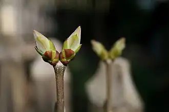Pupeny rostliny jsou stejně jako listy uspořádány na větvích vstřícně. Pupeny na konci větve jsou pak v páru. Tvarem jsou vejčité a nestejně velké.[29] Všechny pak jsou kryty nahnědlými šupinami.[30]