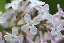 Květy trubkovitého tvaru jsou charakteristické svojí příjemnou vůní.[12] Stavbou jsou lilákové se dvěma tyčinkami a dvěma bliznami. Kalich, dlouhý asi 2 milimetry a nepravidelně zoubkovaný, a lilákovitá koruna jsou oddělení.[3] Korunní trubka je dlouhá 10 až 15 milimetrů.[3] Barva se liší podle odrůd šeříků od bílé až po červenofialovou.[4]