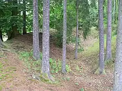 ![]() Tvrziště v lese nad rybníkem | |