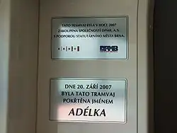 - ↑ Pojmenování první z nových tramvají Škoda 13T6 [online]. Bmhd.cz [cit. 2016-11-08]. Dostupné online.