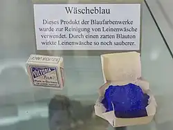 - ↑ a b KAFKA, Josef. Domácí vševěd: Ilustrovaný slovník vědomostí ze všech oborů domácího hospodářství, rodinného a společenského života. [online]. Praha II.: Šolc a Šimáček, s. r. o., 1926 [cit. 2022-10-17]. Kapitola Modření prádla a Modřidlo. Dostupné online.
