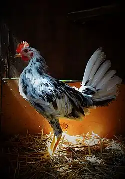 - Ocas: Hustý a vztyčený je tvořen 14-16 širokými a dlouhými pery. Peří má podobné uspořádání jako dva otevřené, překrývající se vějíře. Na vrcholu této krásné kytice peří, jsou dva dlouhé a nápadné oblouky, jež známe jako srpky. Objevuje se ovšem také slepičí, nebo částečně slepičí opeření kohoutů. Existuje i bezocasá varieta, postrádající kostrč.