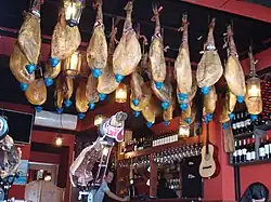 - Jamón serrano – je šunka sušená v horách tak, že se pověsí na vhodné místo v horských chatách, kde je ponechána vlivu tepla a horského vzduchu. Suší se celá prasečí stehna, která byla předtím několik dní ponořena v mořské soli. Ta se odstraní a šunka se pověsí na místo, kde postupně vysychá a dozrává. To může trvat až dva roky. Vysušená šunka pak visí v obchodech, restauracích nebo doma a Španělé z ní postupně ostrým nožem odkrajují potřebné porce.