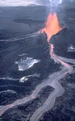 - ↑ a b c Shield volcanoes [online]. library.thinkquest.org [cit. 2009-03-16]. Dostupné v archivu pořízeném dne 2009-03-01. (anglicky)