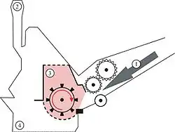 - Nucené vkládání materiálu: Materiál se vloží do vkládacího žlabu. Stroj si pomocí vkládacího pásu nebo bubnů sám materiál natáhne k do štěpkovacího ústrojí.