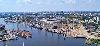Štětínský přístav, ležící na ostrovech mezi rameny Odry -