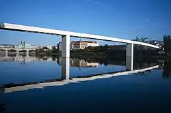 Nejdelší pole je předepnuto čtrnácti přímými kabely tvořenými 21 kusy lan, pole menších rozpětí shodným počtem kabelů s nižším počtem lan, kabely jsou vedeny kanálky vnitřního průměru 105 mm. Krajní pole konstrukce je navrženo jako vertikálně pohyblivé, a to na krajní opěře, kde je umístěn hydraulický pístový mechanismus pro zajištění vertikálního posunu lávky v případě povodně se schopností zdvihu až nad úroveň povodně Q1000.[21]