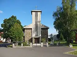 Evangelický kostel byl vystavěn v letech 1966-1970 na místě staršího kostela z první čtvrtiny 19. století, z něhož byl na nový kostel použit pískovcový kámen.[4]