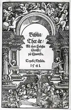 Nová švédština (nysvenska) začíná s vynálezem knihtisku a s evropskou reformací. Po nástupu na trůn nový král Gustav I. Vasa objednal švédský překlad Bible. Bible Gustava Vasy byla dlouho považována za standard spisovné švédštiny. Poprvé v ní byla použita písmena „å“, „ä“, „ö“ a psaní „ck“ namísto „kk“, čímž se jasně odlišila od dánské Bible.