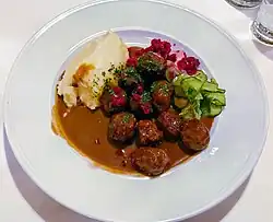 Köttbullar, národní a velmi oblíbené jídlo; jedná se o masové kuličky s hnědou omáčkou, přílohou bývají brambory či kaše a brusinková zavařenina (köttbullar med brunsås, potatis och lingon).