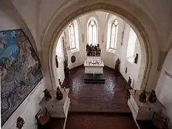 V Červené baště se zachovalo torzo nástěnné malby z přelomu 15. a 16. století, jejímž autorem by mohl podle některých znaků být Mistr nástěnné žirovnické malby.[4]