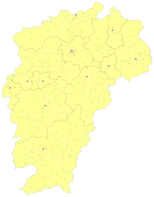 | Mapa provincie | # | Název (čínsky) | Sídelní městský obvod | Počet obyvatel (2010) | ||