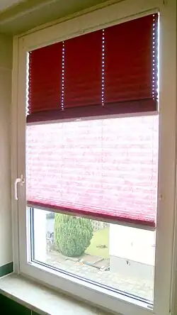 Plisé žaluzie je v podstatě interiérová žaluzie, která má místo hliníkových lamel plisovanou látku.[2] Toto řešení umožňuje velkou variabilitu tvarů a pozic 1,2,2, které dokáže plisé tvořit, množství látek a pestrost barev navíc dotváří vzhled interiéru místnosti. Plisé je moderní alternativa k zastínění především okenních otvorů a k dekoraci interiérů obytných místností.