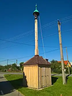 - Dřevěná zvonička, jejíž vznik se datuje kolem roku 1787[9] a souvisí nejspíše s Ohňovým patentem Marie Terezie z roku 1751, nebo jeho zpřísněním, Řádem k hašení ohně od Josefa II. roku 1787. Zvonička je čtvercového půdorysu s vížkou o výšce 9 m. Tvoří ji čtyři hlavní části: betonové protizávaží o hmotnosti 5 tun, dřevěný přístřešek, dubový sloup a zrestaurovaná stříška se zvonem. Zvon, který není původní, nese nápis Žehrov L. P. 1947. Částečná oprava týkající se především stříšky proběhla v roce 1980 a v závěru roku 2015 proběhla kompletní rekonstrukce. Po ní byla zvonička 20. prosince 2015 znovu vysvěcena.