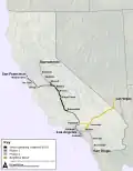 První rozestavěný americký koridor považovaný za skutečně vysokorychlostní (plánováno 350 km/h). Plánování zahájeno již v roce 2008 prohlášením tehdejšího guvernéra Arnolda Schwarzeneggera s plánem otevřít celý koridor do roku 2020 a následně plánovat prodloužení do měst Sacramento a San Diego. K dubnu 2025 je projekt ve fázi aktivní výstavby 119 mil dlouhého úseku v Centrálním údolí mezi Mercedem a Bakersfieldem. Z tohoto úseku je připraveno k pokládce kolejí pouze 22 mil, přičemž samotná pokládka kolejí by měla začít v příštím roce.