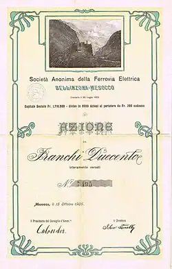 - ↑ Botschaft des Bundesrates an die Bundesversammlung betreffend Konzession einer elektrischen Schmalspurbahn von Mesocco über San Bernardino und Hinterrhein nach Thusis (Bernhardinbahn). [online]. 1922-06-19 [cit. 2022-06-06]. Dostupné online. (německy)