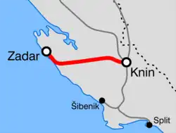 V tomto článku byl použit překlad textu z článku Bahnstrecke Knin–Zadar na německé Wikipedii.