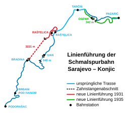 - Konjic – Sarajevo, 55,432 km, otevřena 1. srpna 1891