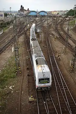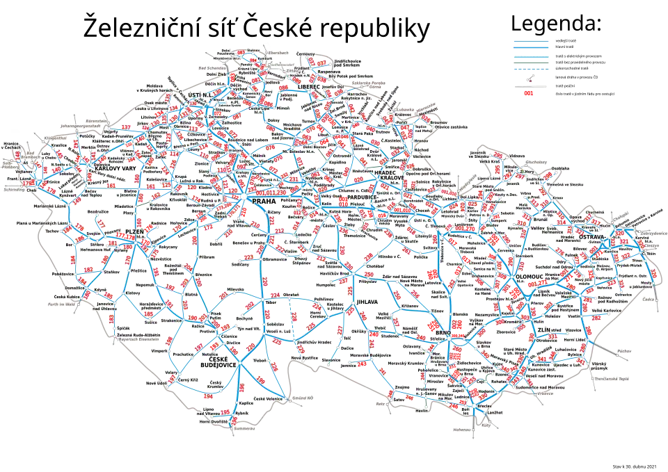 - ↑ RICHTER, Jan. Železnice nestíhá. Současný provoz měl nastat až za 30 let, páteřní tratě jsou na hraně kapacity. Ekonom.cz [online]. 2020-02-20 [cit. 2020-02-22]. Dostupné online.