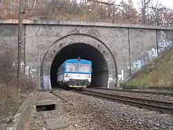 Obrázky, zvuky či videa k tématu Železniční tunel pod Bílou skálou na Wikimedia Commons - Holešovický portál: 50°6′52″ s. š., 14°27′9″ v. d.