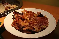 Místo nejčastěji používaných jablek lze použít také hrušky. Jedná se o pokrm, který je tradiční součástí české kuchyně a často je podáván ve školních jídelnách nebo jídelnách závodního stravování.