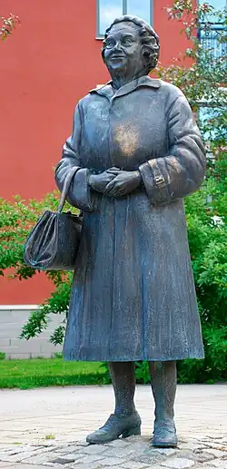 - ↑ ”Tanten med väskan ” blir staty i brons. DN.SE [online]. 2014-04-01 [cit. 2020-04-14]. Dostupné online. (švédsky)