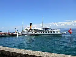 Plavba parníkem po Ženevském jezeře začala na počátku 19. století, od 1. července 1823 jezdila mezi Ženevou a Lausanne pravidelně loď Guillaume Tell.[2] Společnost Compagnie générale de navigation sur le Lac Léman (CGN) se v současnosti stará především o osobní lodní dopravu na Ženevském jezeře. Historicky významná nákladní lodní doprava je dnes už zanedbatelná, naproti tomu osobní je nejintenzivnější vždy v létě, kdy na linkách jezdí i kolesové parníky. V Ženevě u nábřeží jsou zakotveny dřívější nákladní „koráby“.
