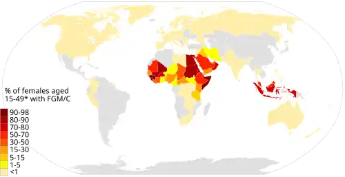 Podle WHO se ženská obřízka praktikuje v 28 zemích západní, východní a severovýchodní Afriky, v částech Středního východu a v některých společenstvích imigrantů v dalších zemích. WHO odhaduje, že s následky procedury dnes žije asi 140 milionů žen a dívek po celém světě, z toho asi 92 milionů v Africe.[1]