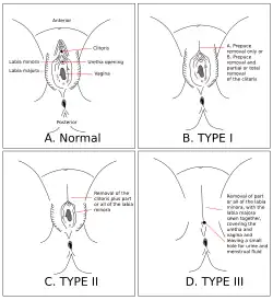 - ↑ Female genital mutilation [online]. National Health Service, rev. 2012-06-25 [cit. 2013-04-30]. Dostupné online. (anglicky)