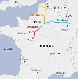 - ↑ a b ČTK; SCHWAN, Jakub. Ve Francii dotáhli opravy železnice po sabotáži. ČT24.cz [online]. Česká televize, 2024-07-28 [cit. 2024-07-28]. Dostupné online.