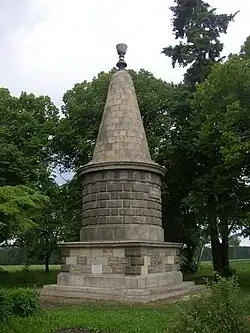 - kamenný válec zakončený konzolovou římsou na němž jsou uvedeny názvy vítězných bitev (Praha 1420, Plzeň 1420, Sudoměř 1420, Vodňany 1420, Benešov 1420, Vožice 1420, Žižkov 1420, Kutná Hora a Německý Brod 1422, Hořice 1422, Malešov 1424, Přibyslav 1422)[19]